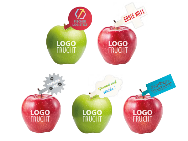 LogoFrucht Apfel und weitere Früchte - individuell mit Ihrem Wunschmotiv -