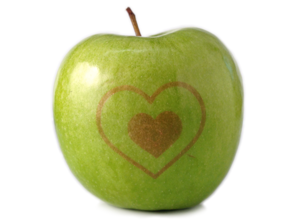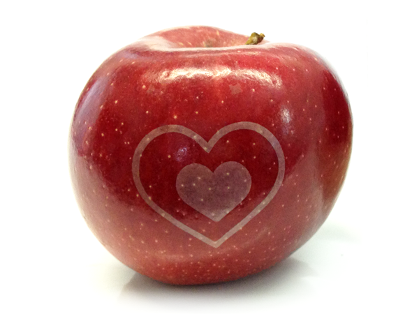 Durch ein neuartiges Verfahren gelingt es uns, die Schale der Äpfel haltbar und lebensmittelecht zu veredeln: durch die Lasergravur werden die Farbpigmente der Schale verändert - und somit bleibt unser Apfel hygienisch unbedenklich.