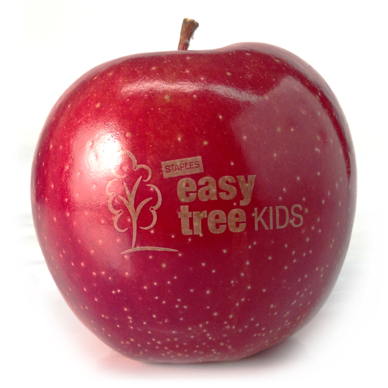 Wir liefern als Neuheit jetzt auch bedruckte Äpfel (Druckfarben: weiß, rot oder schwarz) sowie weiteres Obst und Gemüse (u.a. Zitronen, Orangen, Nektarinen, Bananen).